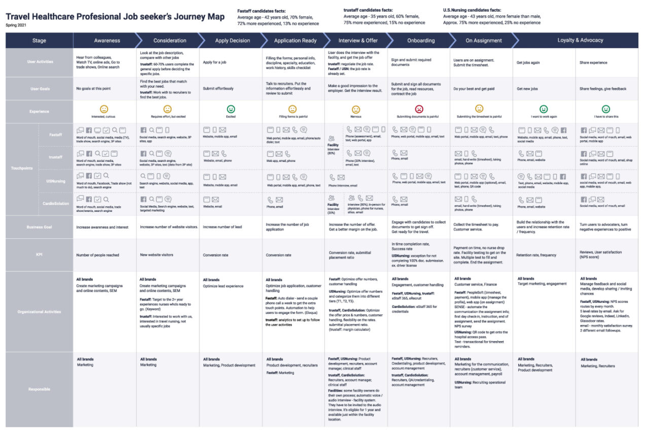 I developed a journey map by interviewing the brand’s stakeholders and analyzing past data.