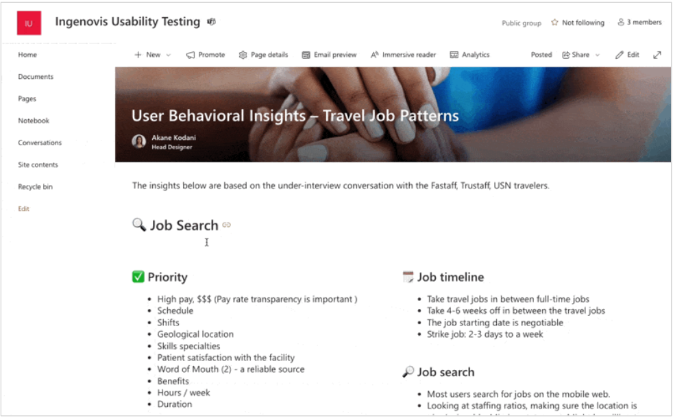 I created a Microsoft SharePoint site to document previous usability tests and UX research.